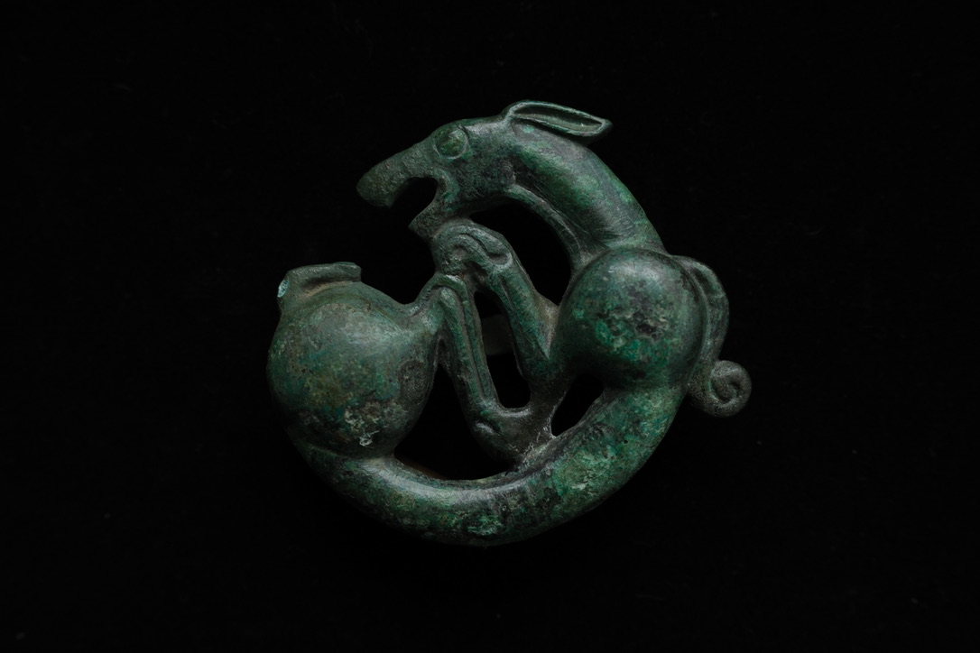 丸くなった獣のレリーフは、初期遊牧民時代のスキタイ動物様式における最古の図像の一つ。古代ユーラシア遊牧民の哲学において極めて重要な意味を持つ表意文字であったと考えられています。このタイプの装飾品は主に馬の胸の装飾品として使われていたようです。ピョートル大帝のシベリアコレクション(エルミタージュ美術館蔵)が有名。